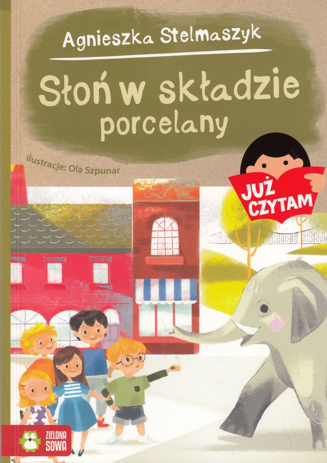 Słoń w składzie porcelany / Agnieszka Stelmaszyk ; ilustracje Ola Szpunar. - Wydanie 5. - Warszawa : Zielona Sowa, copyright 2019. - 46, [2] strony : ilustracje ; 21 cm.